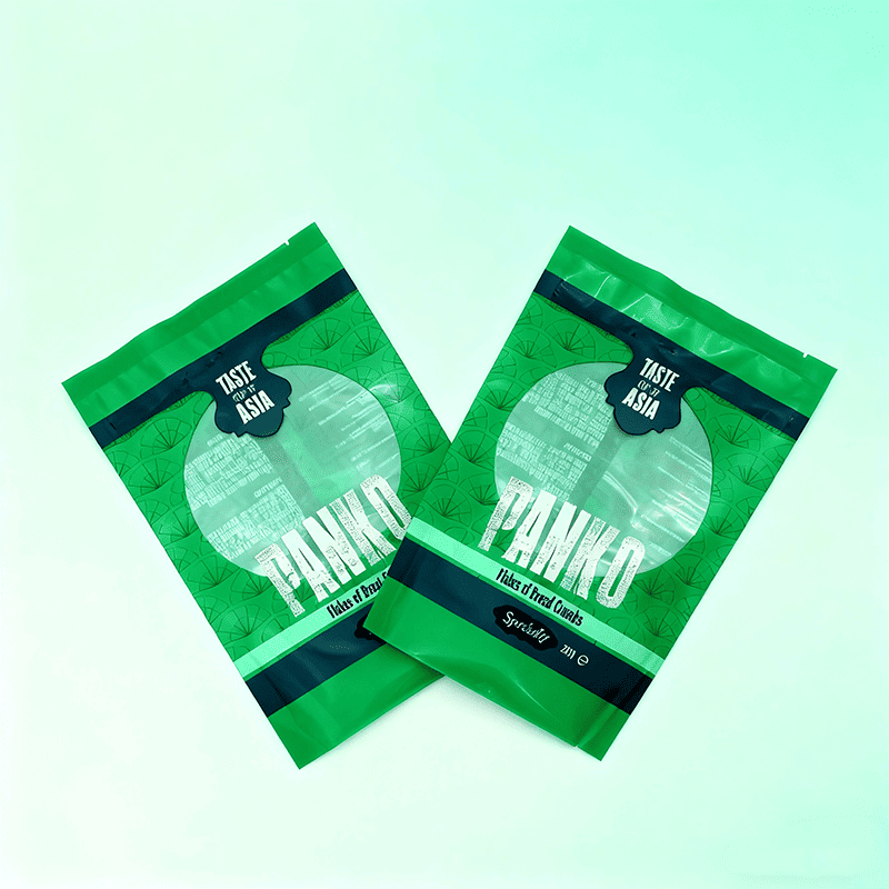 Flat pouch for bread crumbs is a cost-effective and environmentally friendly option that is lightweight, easy to produce and has a lower carbon footprint than other materials. High barrier properties protect products from oxygen and moisture, and eco friendly packaging minimizes impact on the environment.